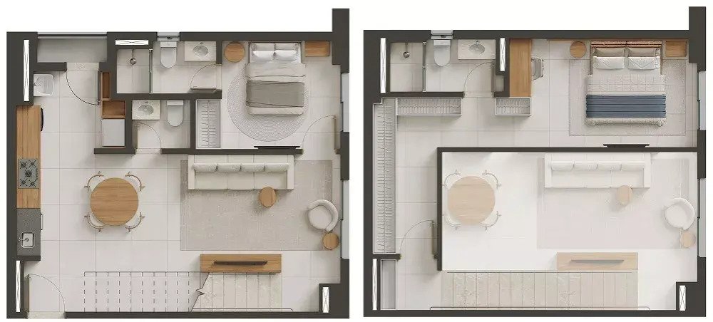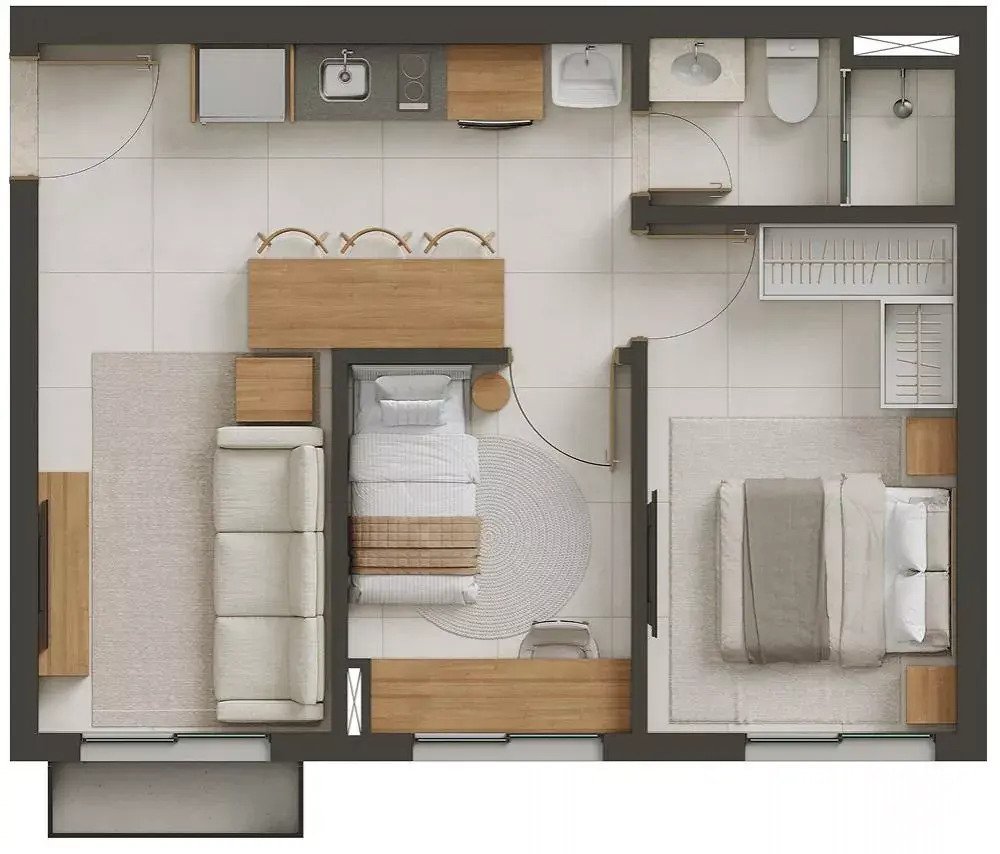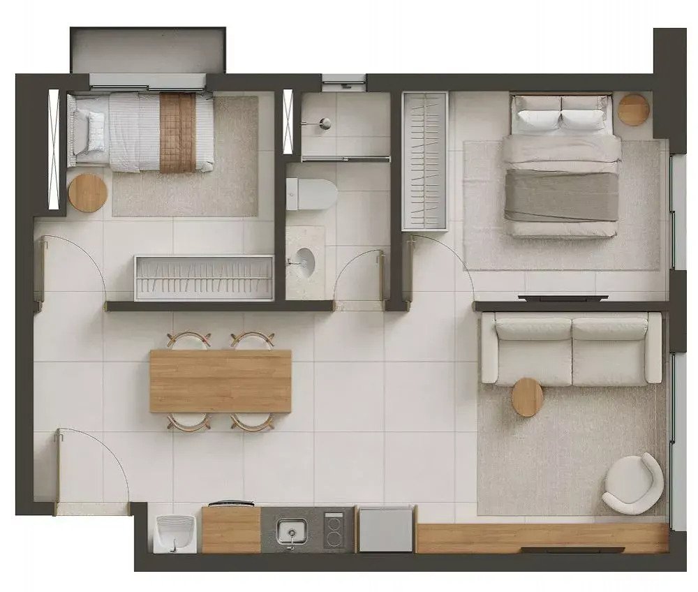 Espaços bem dimensionados e integrados que ampliam conforto e funcionalidade.