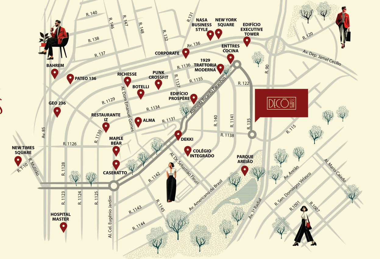 Situado na Rua 135 — extensão natural da famosa Alameda Ricardo Paranhos — o Decô oferece unidades inteligentes de 26 m² a 95 m², ideais para moradia urbana ou investimento com alto potencial de valorização e liquidez.